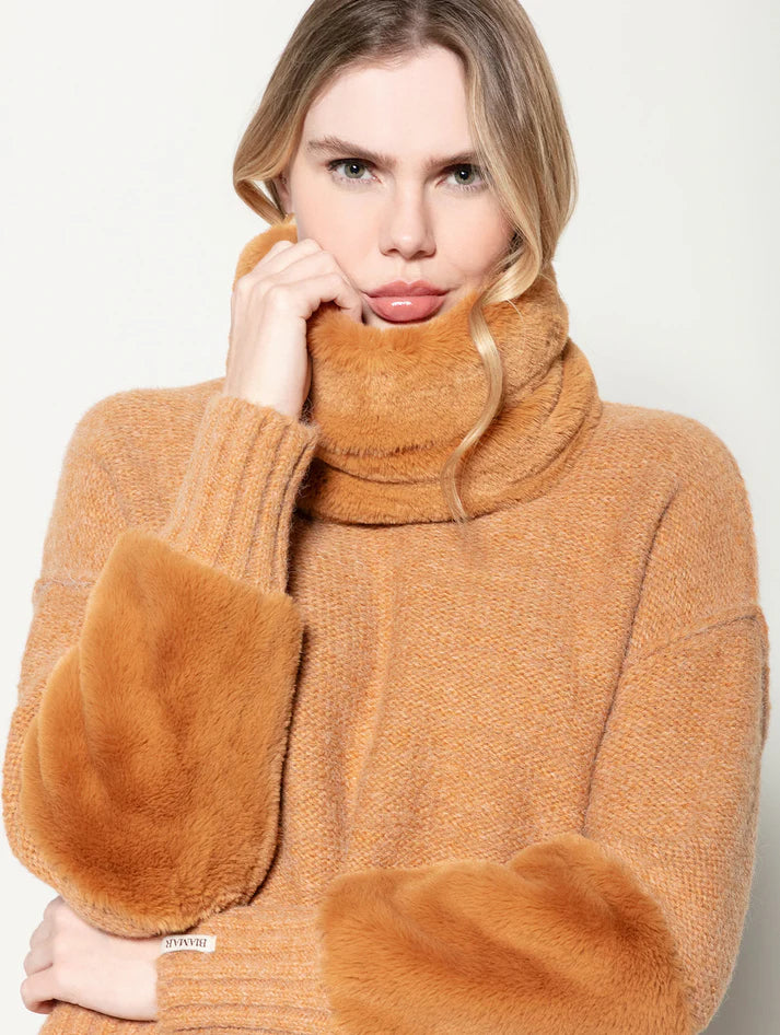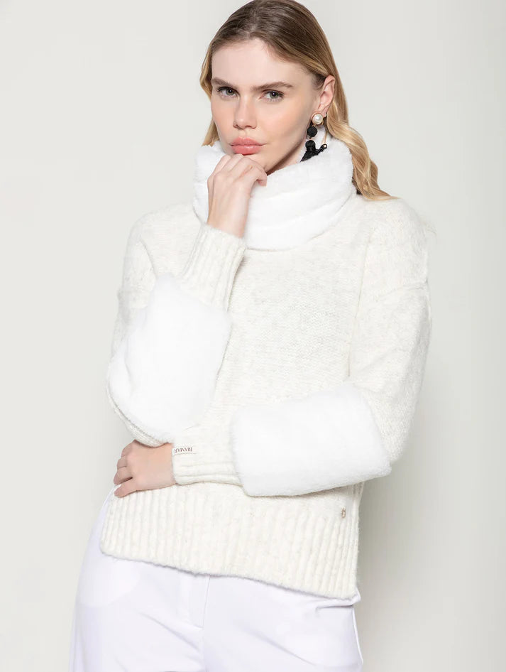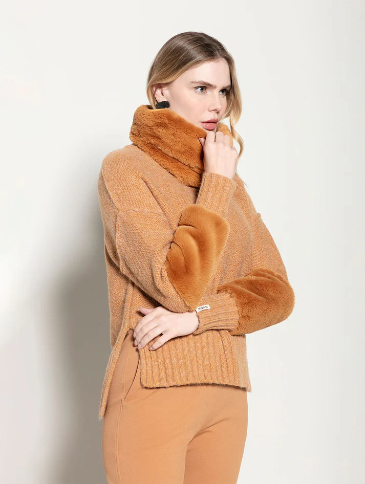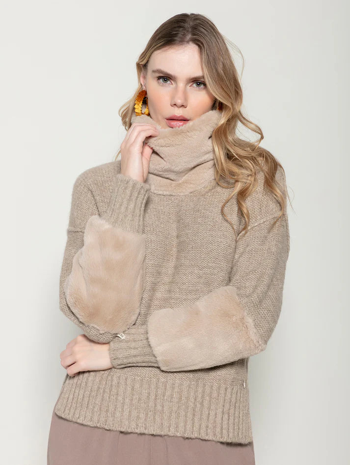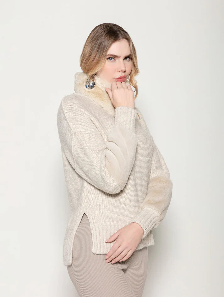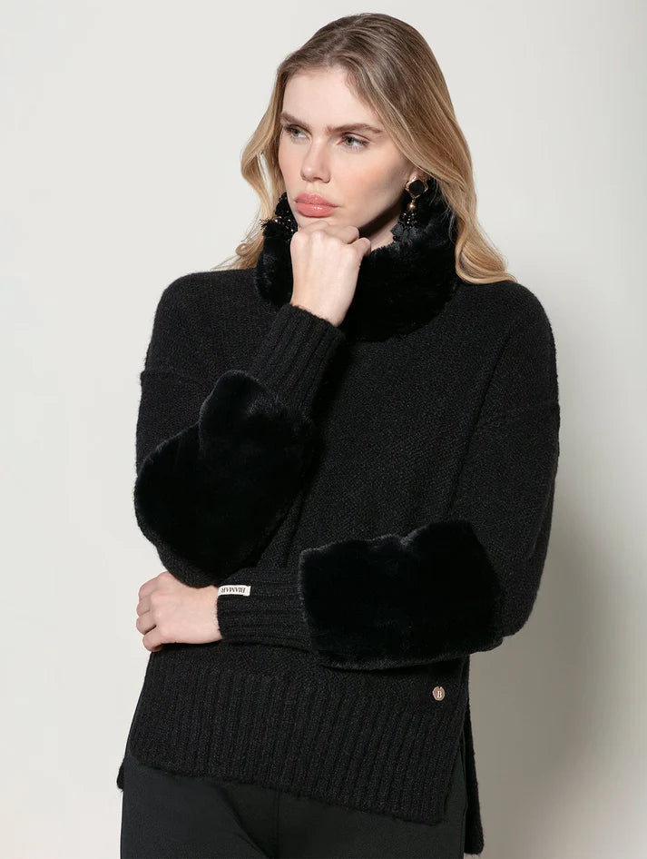 BLUSA COM PELE NO PUNHO E NA GOLA (REMOVÍVEL) FENDA LATERAL